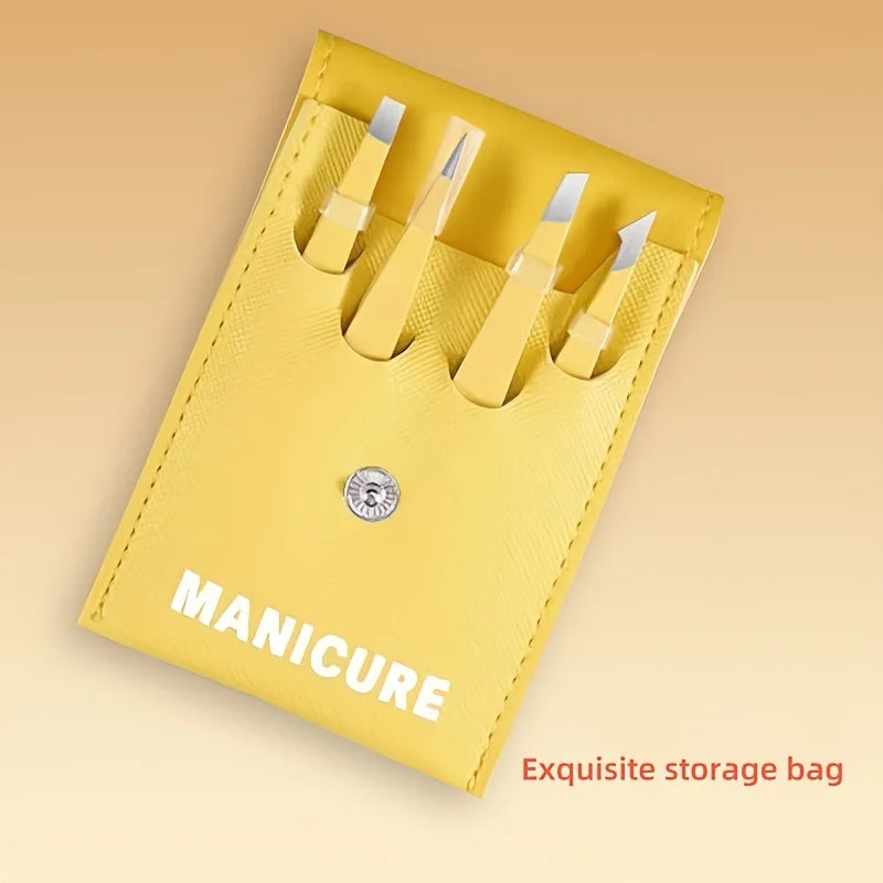 This 4 - piece set comes with four different styles of tweezers, each designed for specific eyebrow - grooming tasks. There's a straight - tipped tweezer for general hair removal and shaping, a slant - tipped tweezer that is perfect for following the natural curve of the eyebrow and removing multiple hairs in one go, a pointed - tipped tweezer for targeting those hard - to - reach and fine hairs, and a curved - tipped tweezer for gently plucking hairs from the inner and outer corners of the eyebrow. This variety of styles allows you to customize your eyebrow - grooming routine based on your individual needs and preferences.
