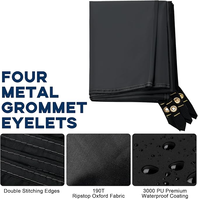 - 【Heavy Duty Hook】:This tent tarp with heavy duty hook is made of tear resistant poly material with double stitching at the seams, not only does it have a superior waterproof coating, the tarp comes with 4 metal grommet eyelets on the corner straps , which helps reduce fluttering in the wind.