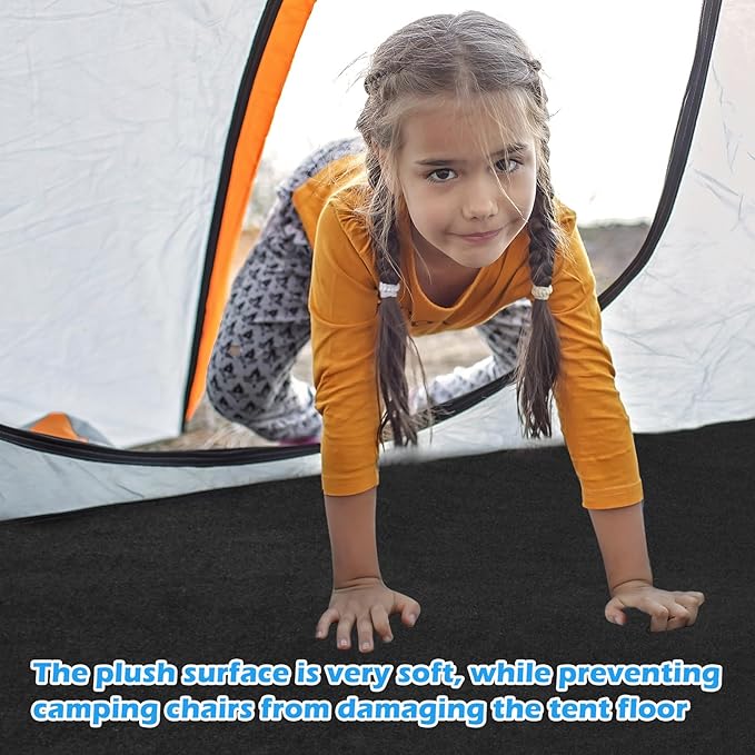 - Portable and Practical: The tent carpet mat measures 6.2 x 5 feet, the large size is suitable for most camping tents, it comes with a 59inch long tie strap, you can roll up the camp tent mat and tie it in with the tie strap,, easy to carry, making it an ideal choice for outdoor enthusiasts.