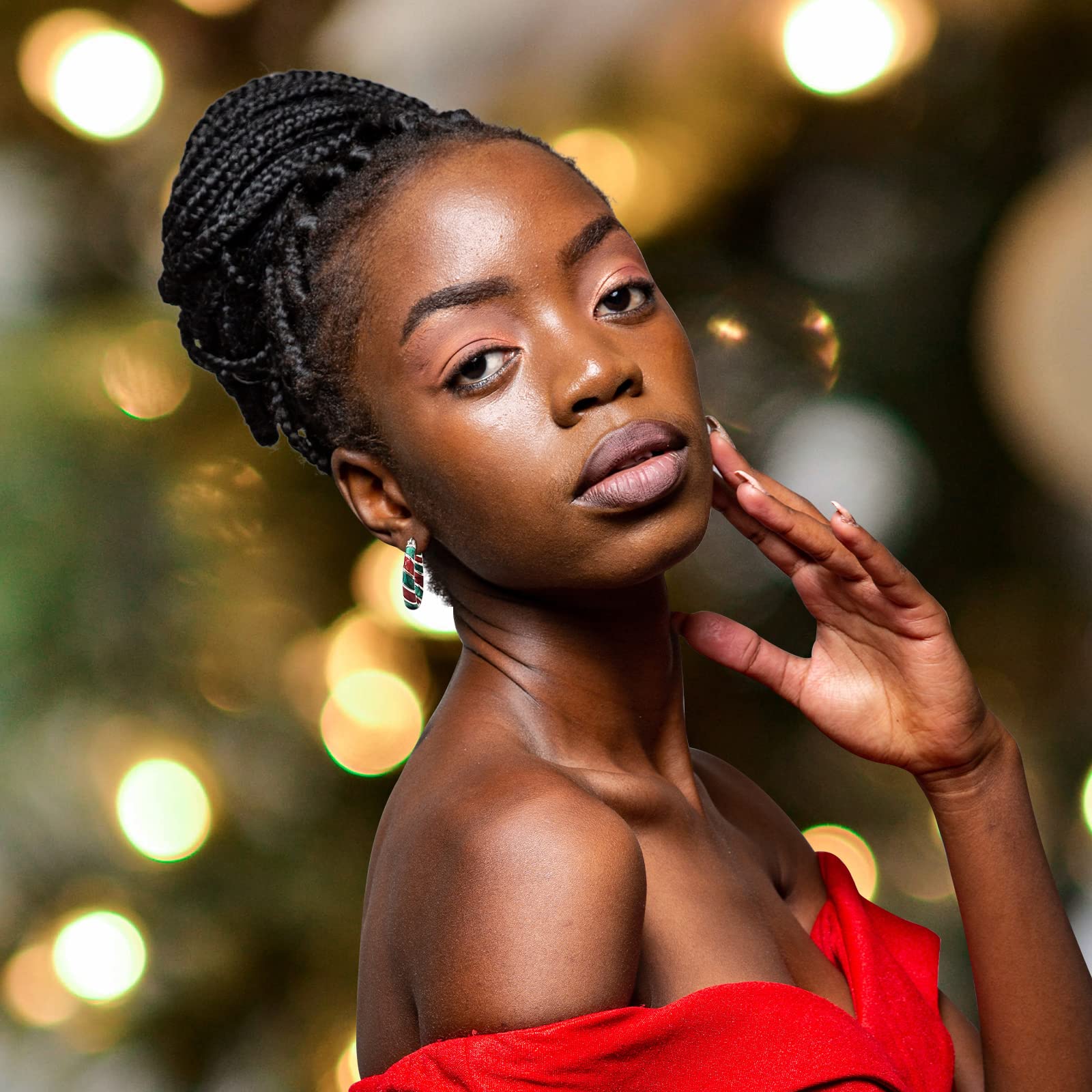 - HYPOALLERGENIC:This green and red holiday earrings for women is made of Brass and rhodium plated.Hypoallergenic, nickel free, high quality polished hoop earrings easy to wear and remove, you can wear them for a long time.