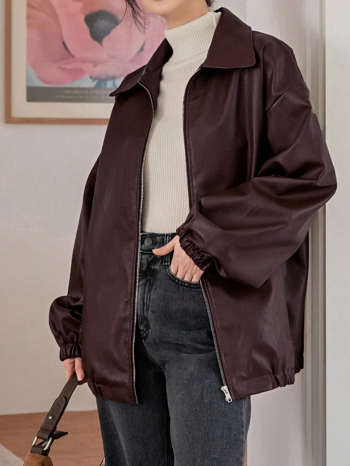Dazy-Less Women's Drop Shoulder PU Leather Jacket