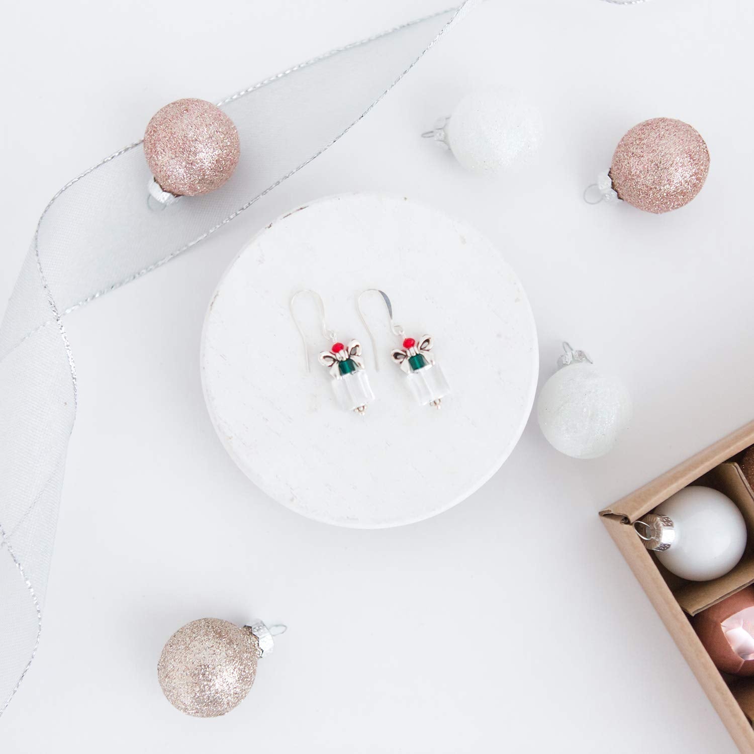 - Luxurious Silver Finish: These handmade earrings boast silver plated ear wires and bow bringing a touch of elegance and sophistication. This silver finish not only enhances the overall aesthetic but also ensures durability, maintaining its luster through the holiday season and beyond.
