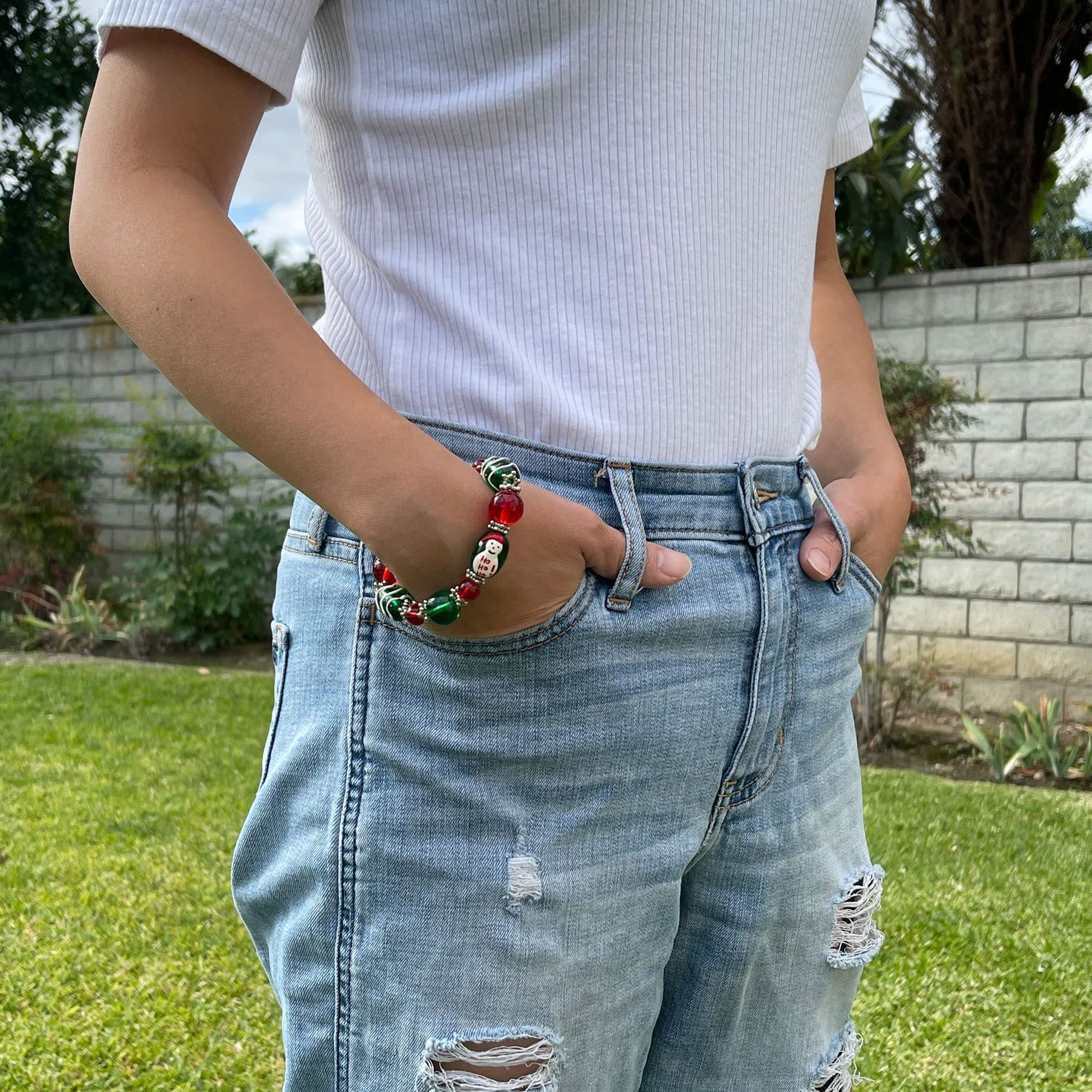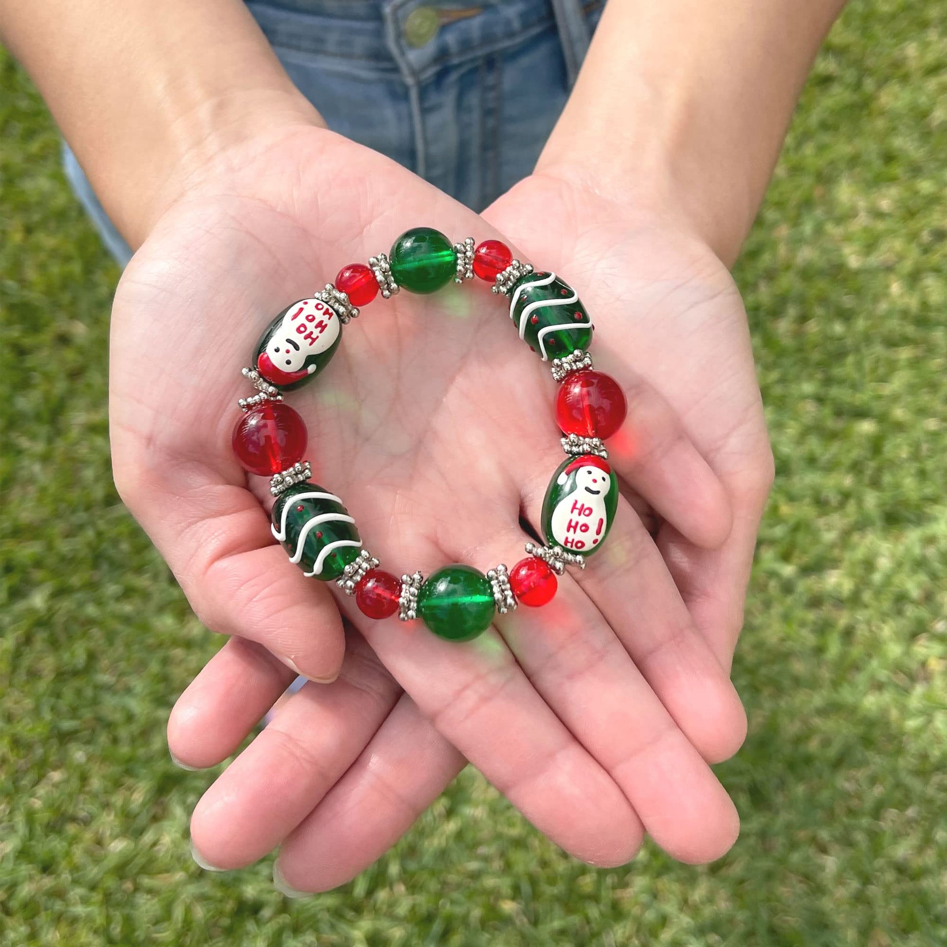 - Festive Elegance: Adorned with vibrant red and green glass beads, this bracelet captures the spirit of Christmas in a tasteful and stylish manner. The dazzling glass beads reflect the lights of the season, creating a mesmerizing and eye-catching accessory.