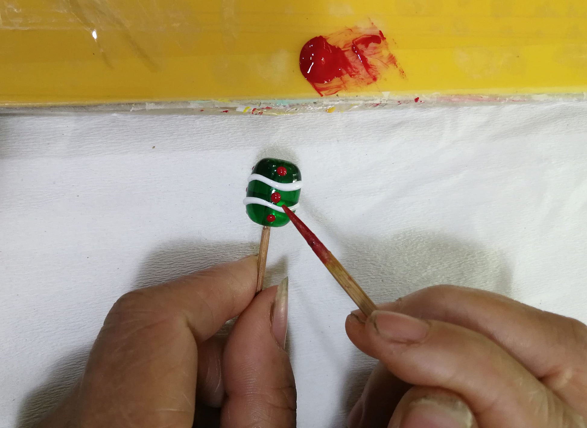 - Elevate your holiday style with our hand-painted Christmas motif glass beads! Each bead is a miniature masterpiece, capturing the festive spirit with intricate designs and vibrant colors. Add a touch of artistry to your accessories and make this season truly special.