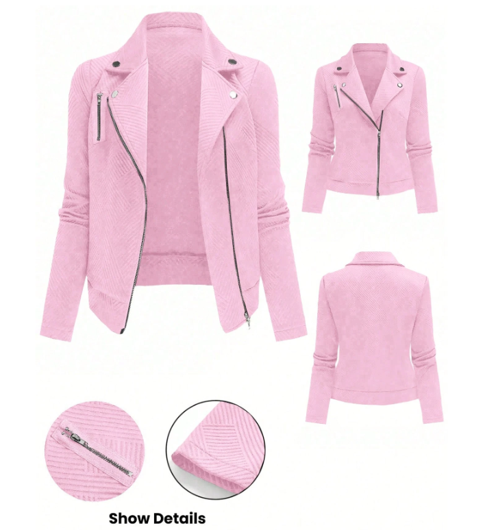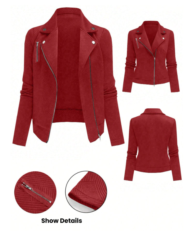 Elevate your outerwear collection with the GlowEve Women's Textured Moto Jacket. Crafted with a distinctive textured fabric, this jacket combines edgy style with refined sophistication. Its tailored fit enhances the silhouette, while classic moto details like zip closures and structured seams deliver a timeless look. Perfect for layering, it offers both comfort and durability for everyday wear or special occasions. This jacket is an expert choice for those seeking a bold, versatile piece that seamlessly integrates into a modern wardrobe.