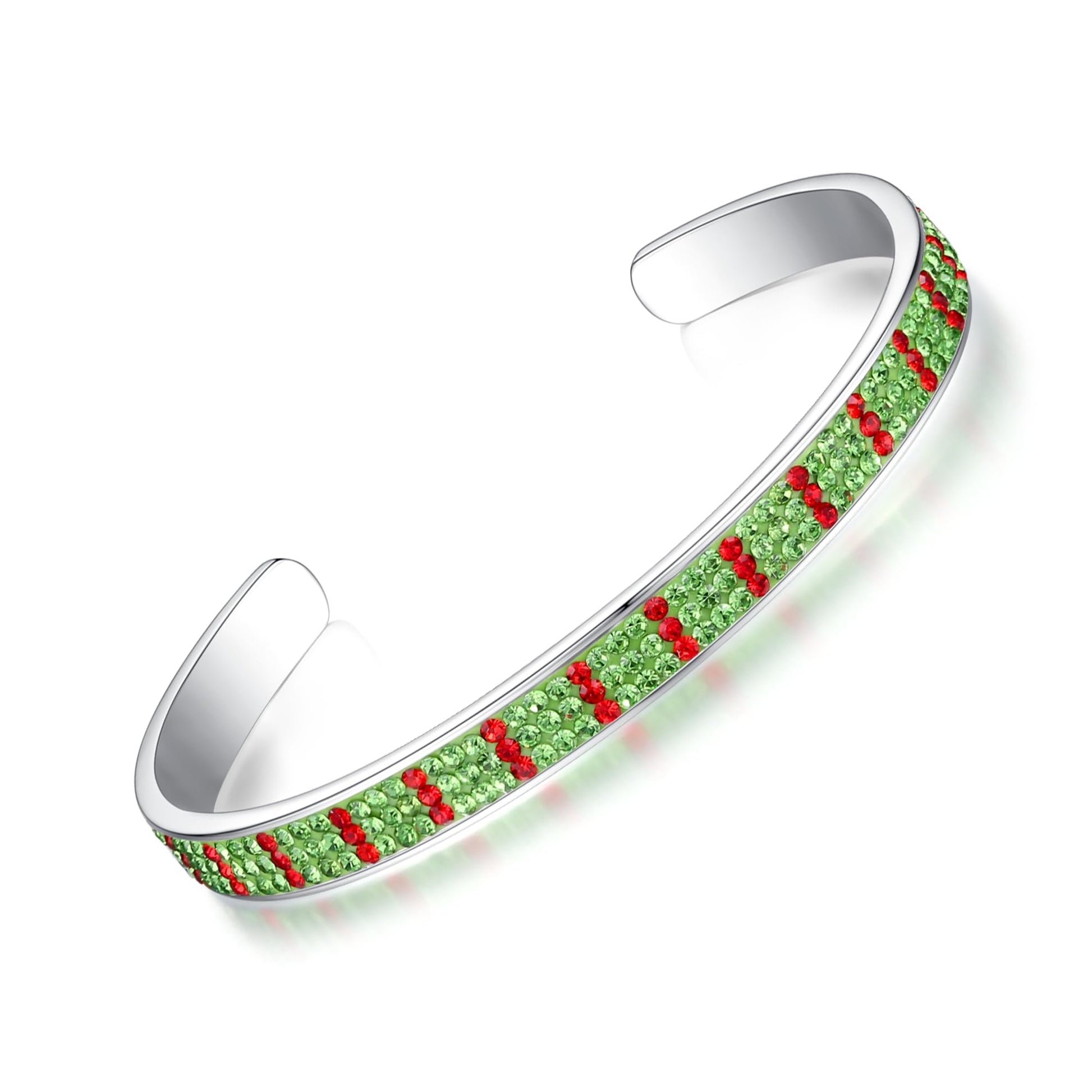 - ❤️💚【CHRISTMAS BRACELET】: Crystal bangle bracelet uses the Christmas color scheme. Gorgeous red and green bracelets are made of brass and silver plated. Hypoallergenic, nickel& lead free and comfortable for all day wearing.