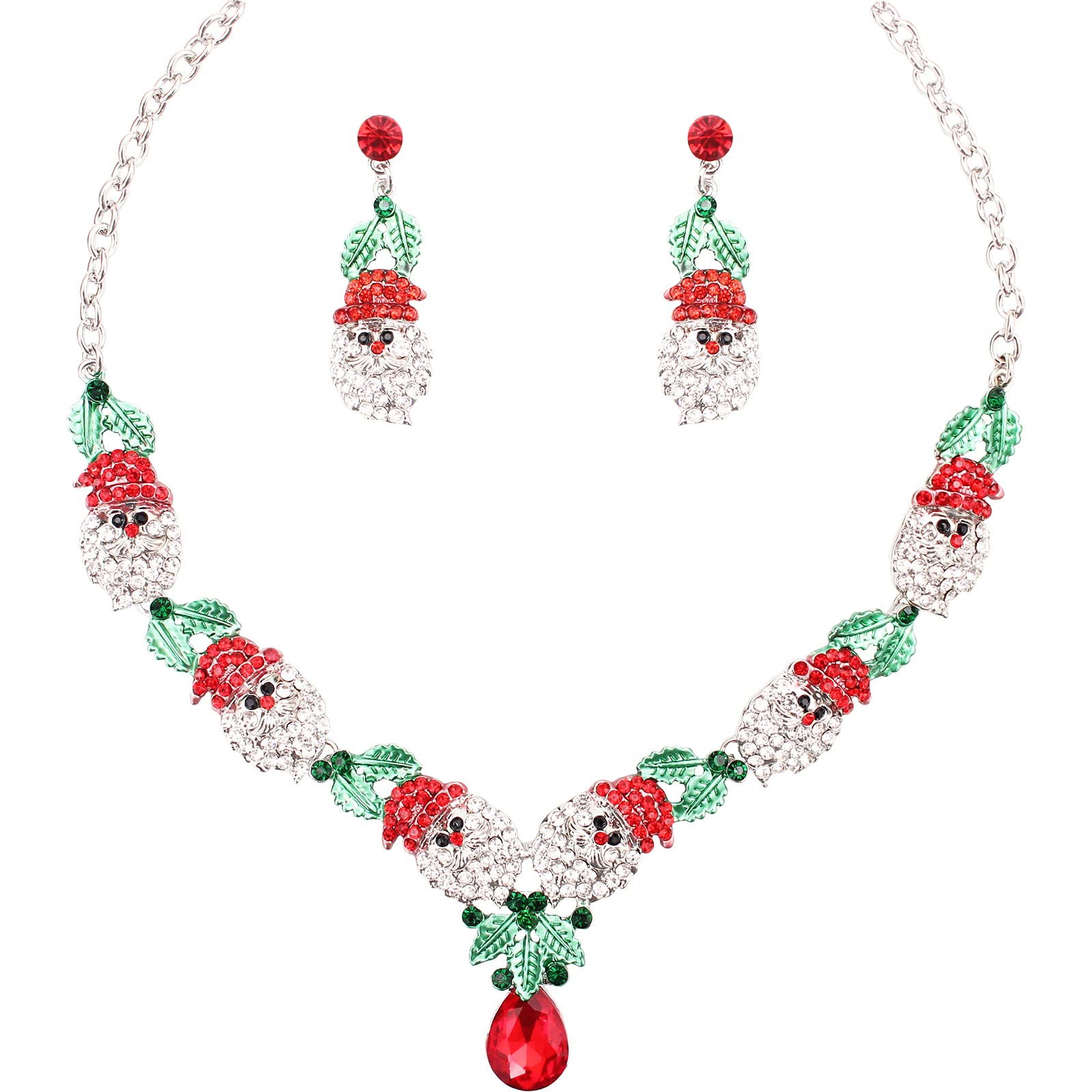 QYJ 2 Pcs/Set Fashion Statement Bib Santa Claus Christmas Necklace Dangle Earring Costume Jewelry Set for Christmas Party Xmas Gift for Women(Style1-Gold Plated)